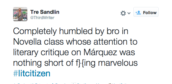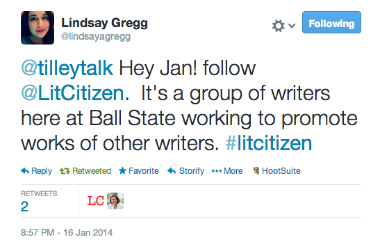 In case you were thinking that I was teaching students how to be “hype-machines” in my Literary Citizenship class, check this out from my student James Gartner:
