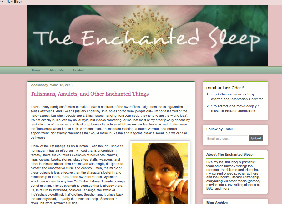 Here’s Kiley Neal, who’s trying to establish herself as a writer of fantasy. She wants to find other fantasy writers and—ultimately—readers. This week she wrote about “Talismans, Amulets, and other Enchanted Things.”