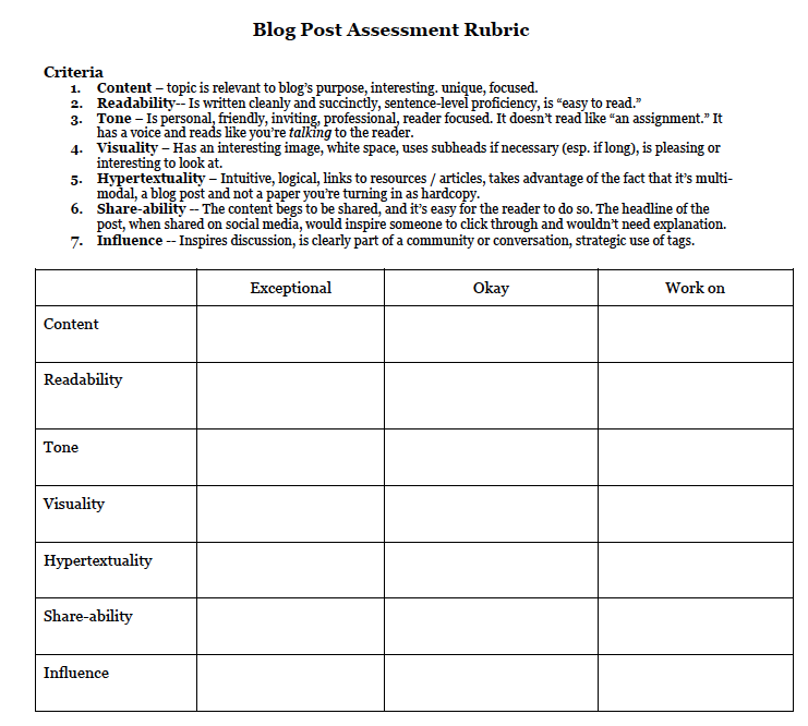 Here’s the rubric I use to evaluate their posts.